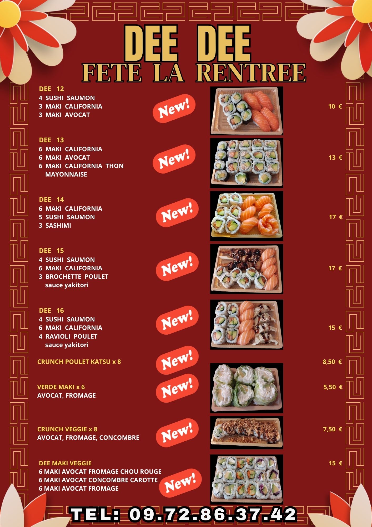 Nous sommes heureux de vous accueillir au DEE DEE THAÏ SUSHI.